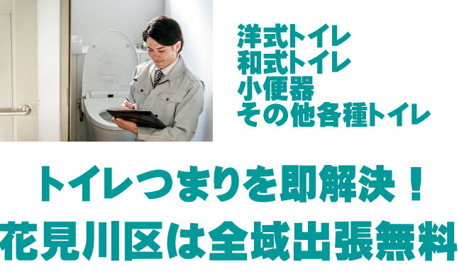 花見川区で対応可能なトイレつまりの修理サービスとなります。